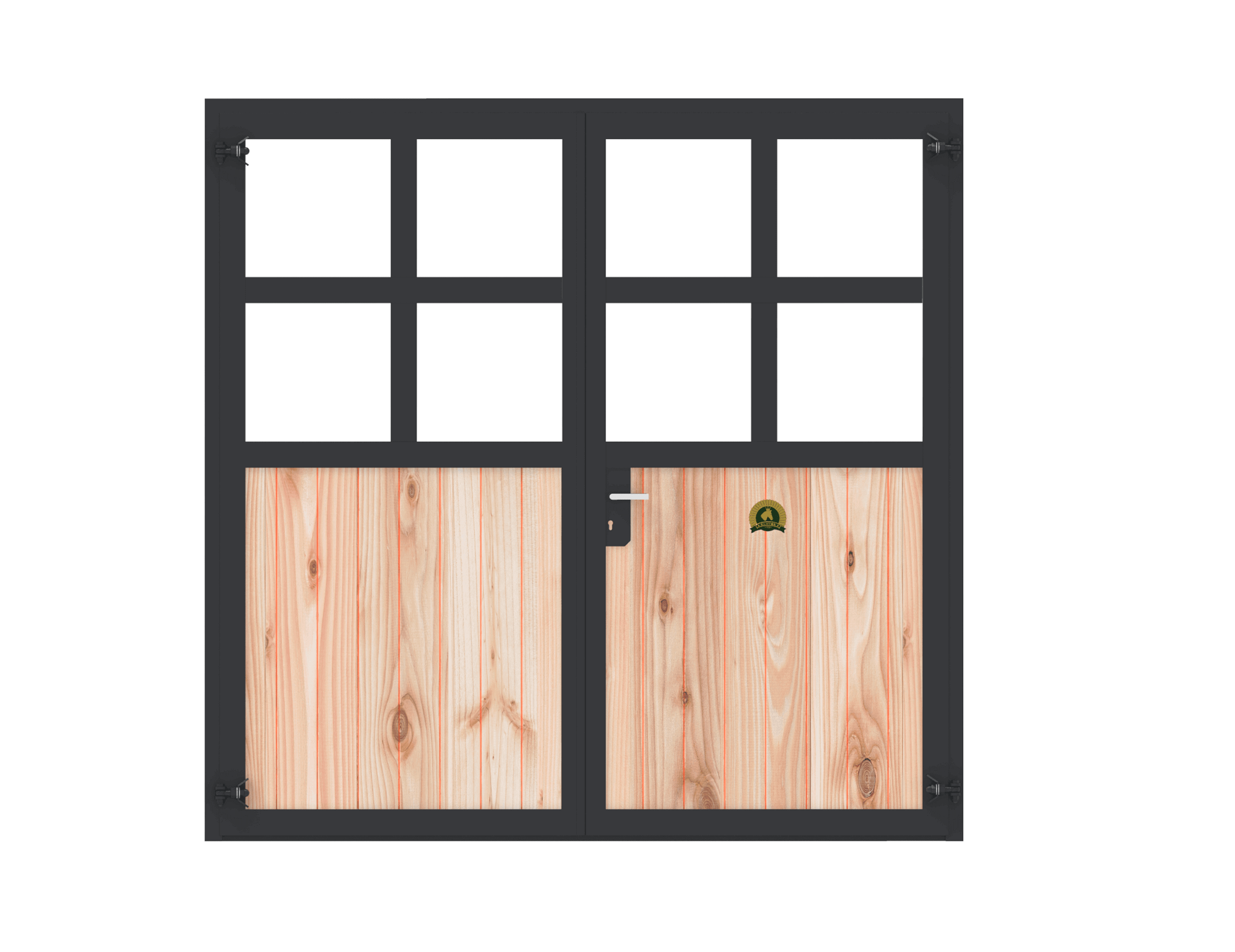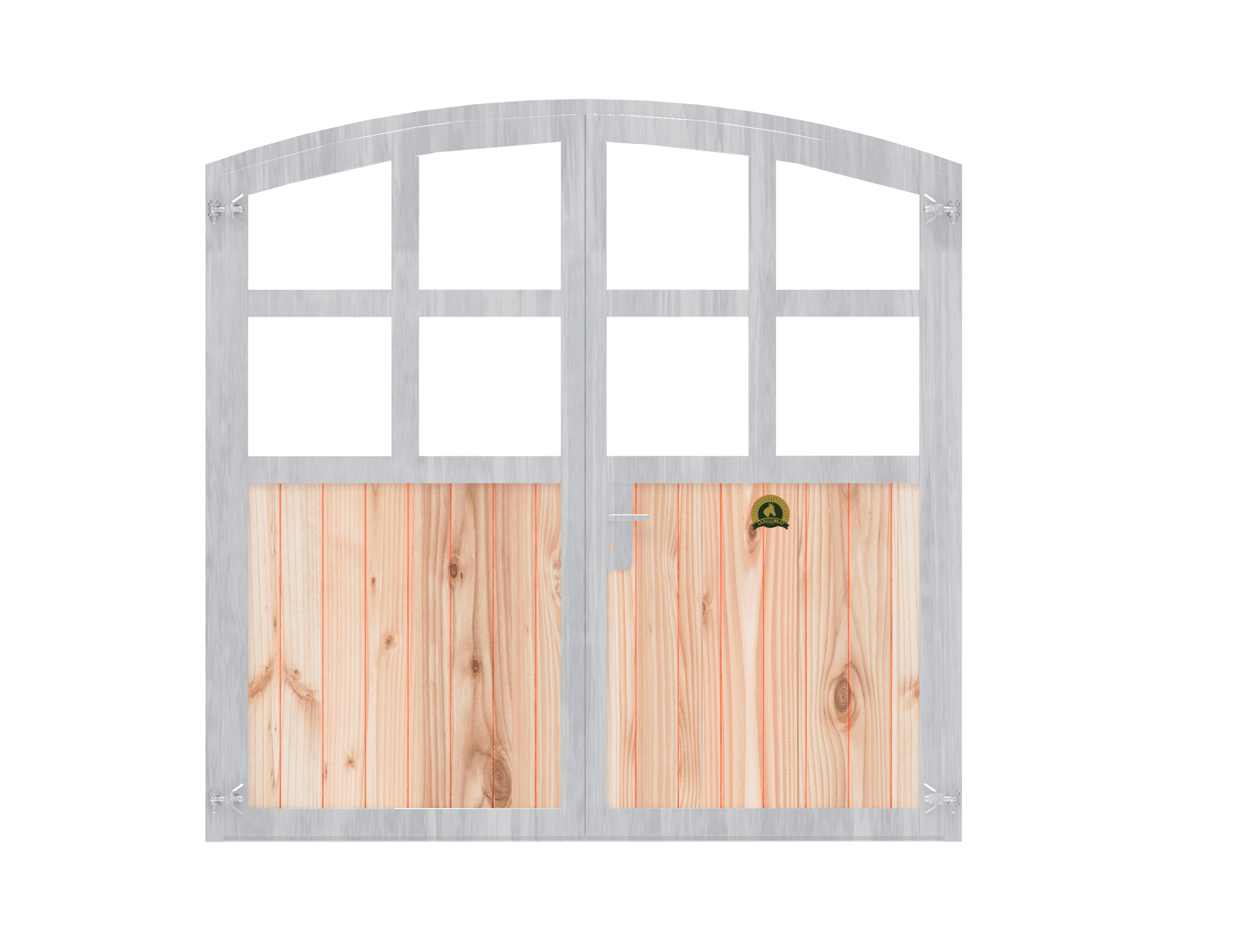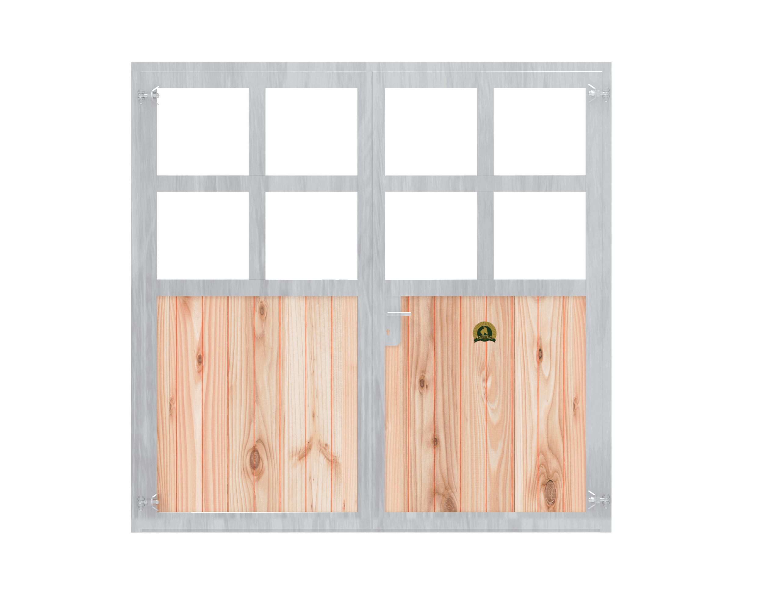 Beispiel: Stalltor – zweiteilig – Holzfüllung Douglasie – Plexiglas – 3,00m hoch x 2,50m breit