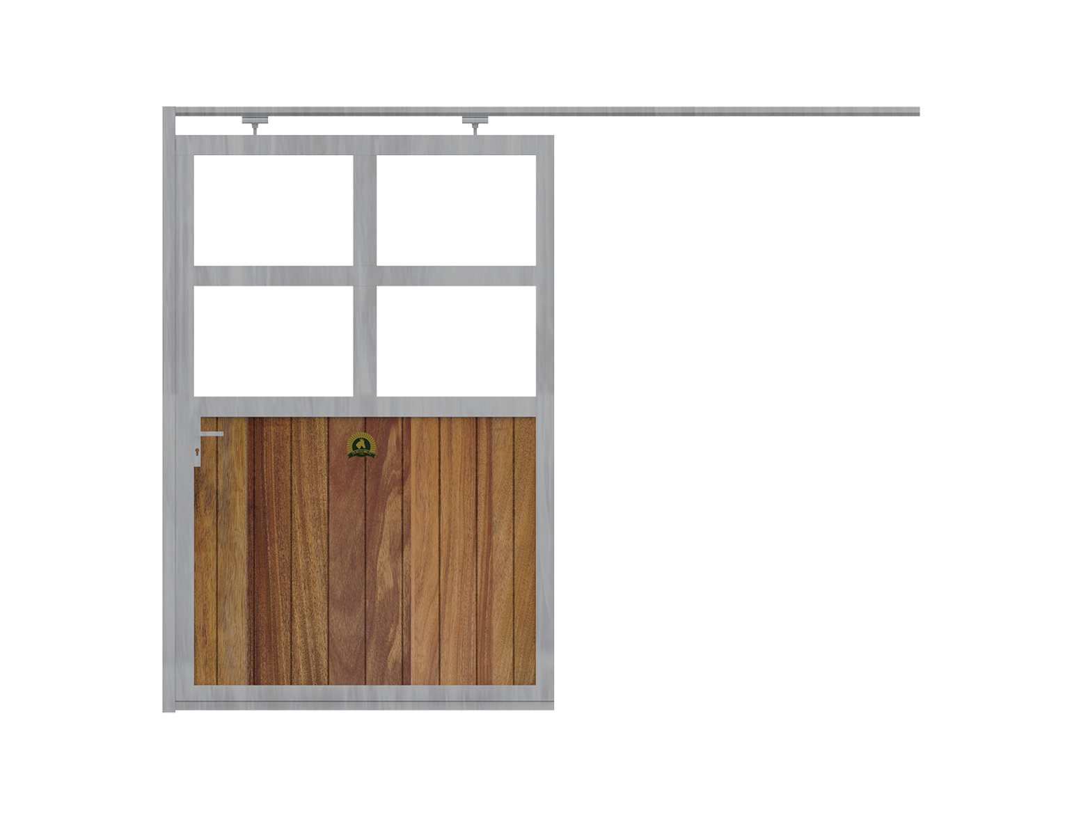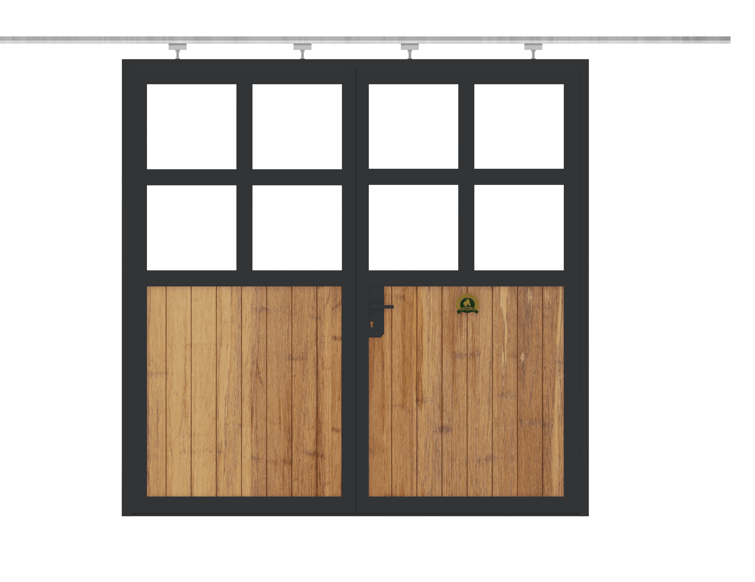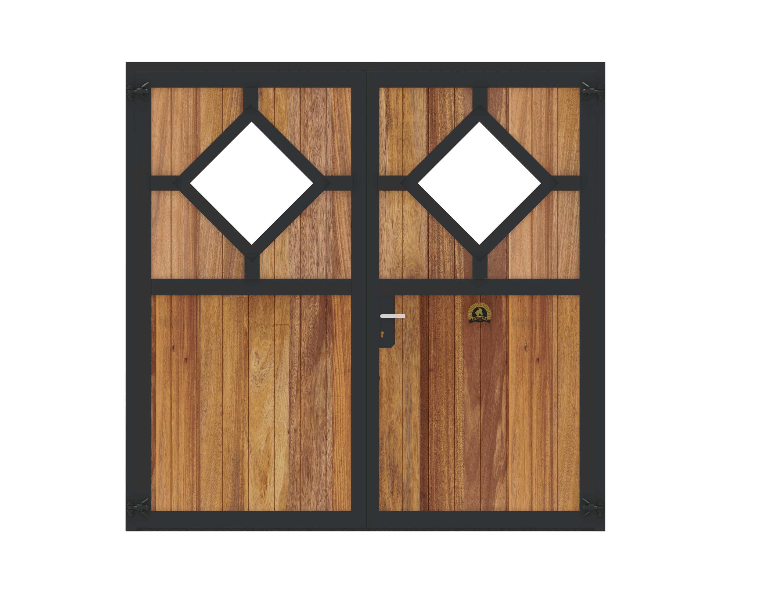 Beispiel: Stalltor – zweiteilig – Holzfüllung Douglasie – Plexiglas – 3,00m hoch x 2,50m breit